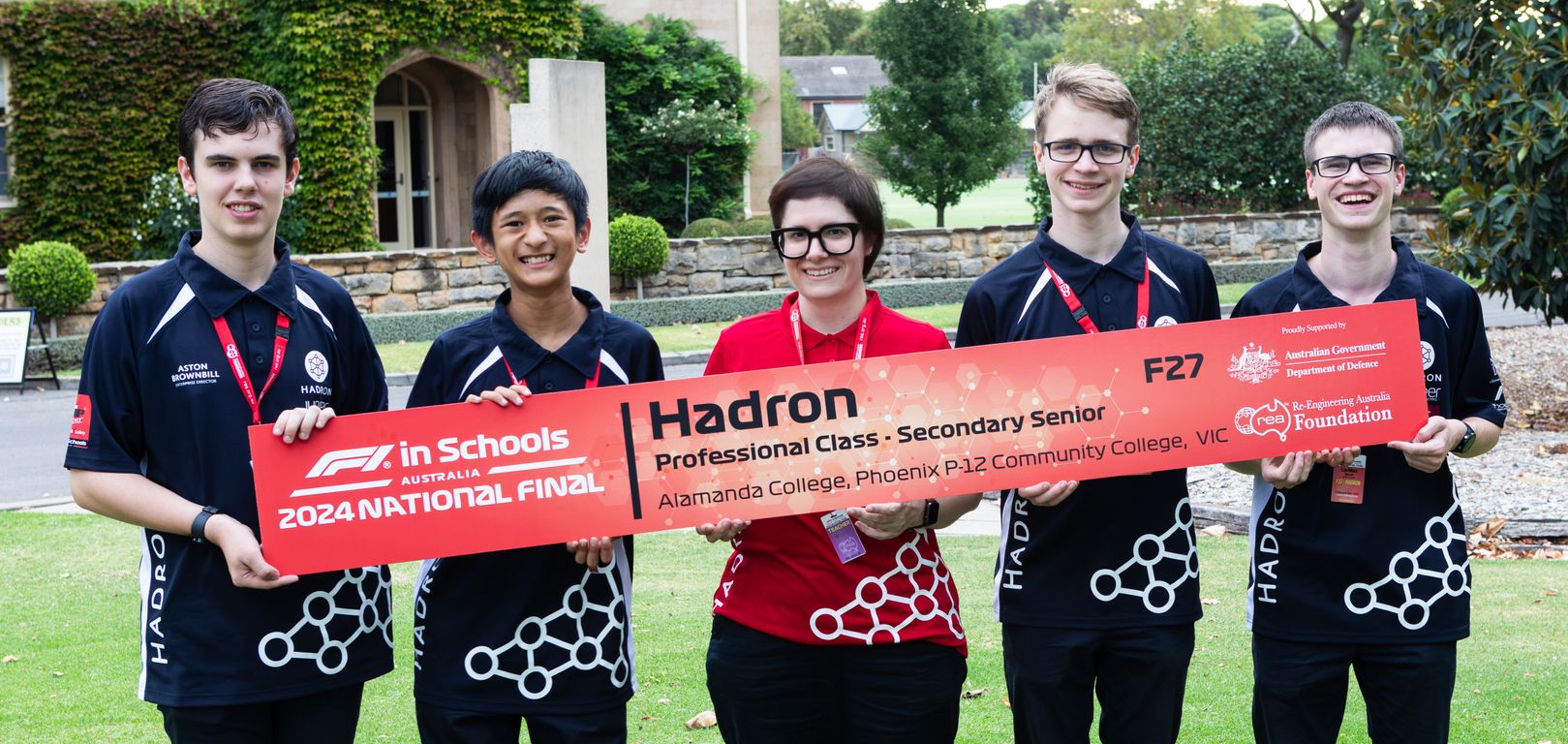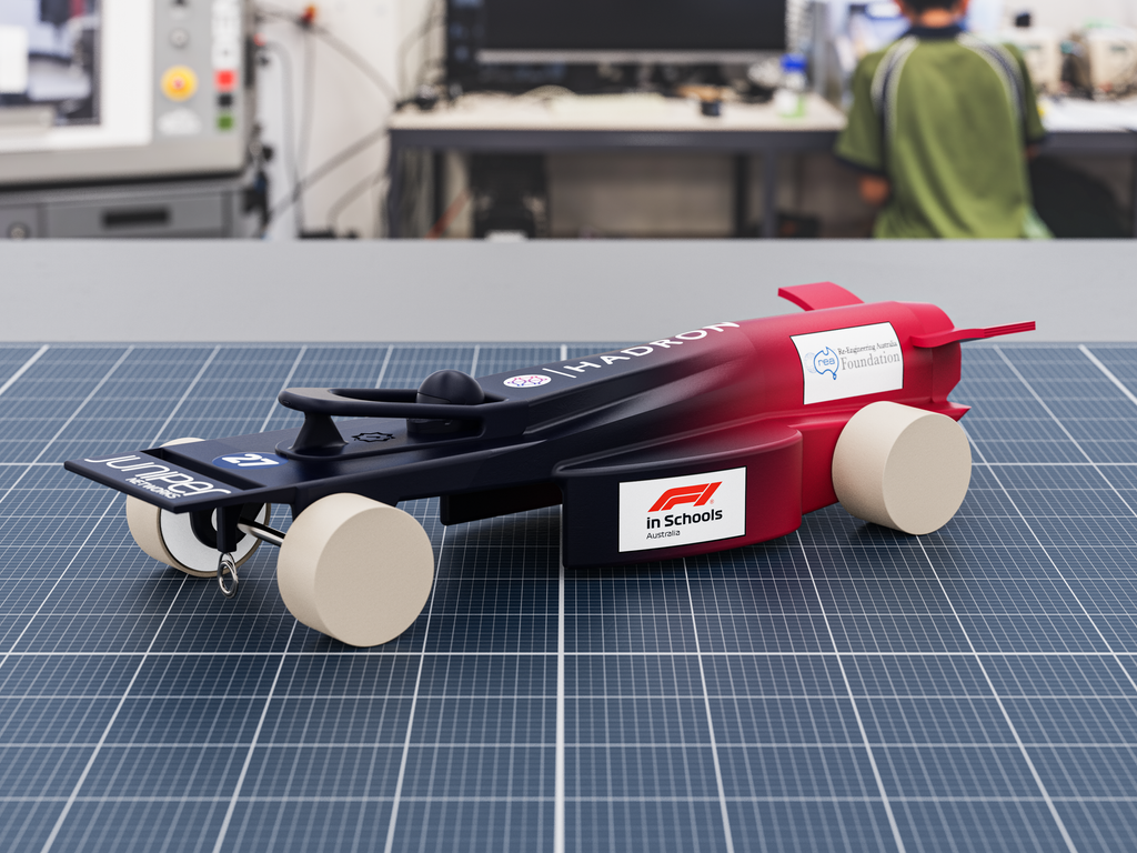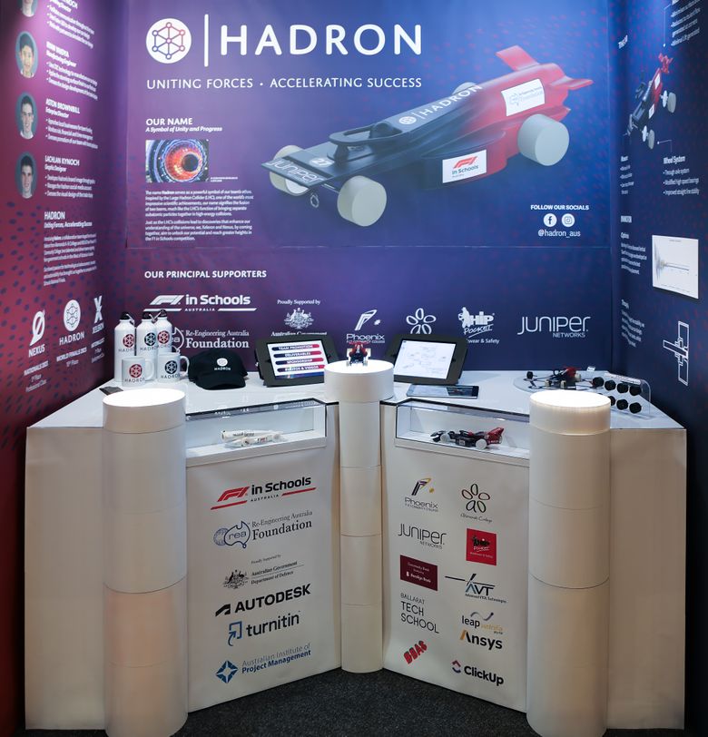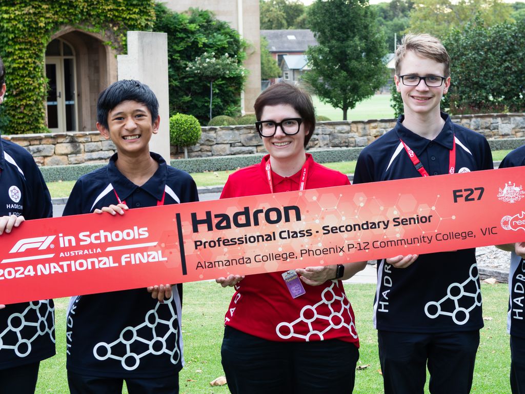 In the final weeks of Term 1, 2024 Hadron, a collaboration between Alamanda College and Phoenix College in Ballarat, travelled to Adelaide for the F1 in Schools National Finals. Joining the team as Manufacturing Engineer was Ryan Vaida from 8I. Ryan competed in the State Competition in 2023 in the Cadet class and transitioned to the Senior Professional class, usually reserved for students in Year 11 and Year 12.